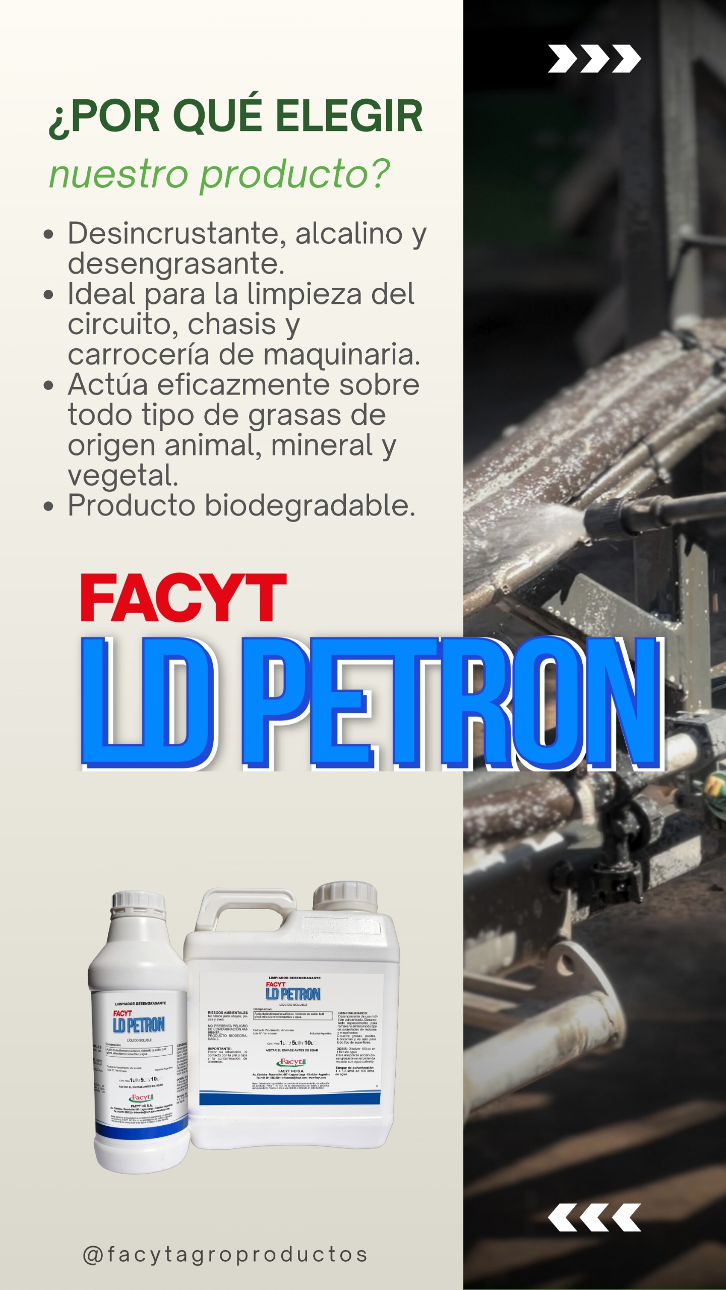 limpieza de todo tipo de superficies que admita agua. Actúa eficazmente removiendo grasas de origen mineral, animal y vegetal. Por su versatilidad